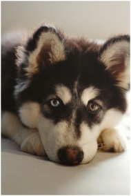 Adorable Siberian Husky puppy with heterochromia g