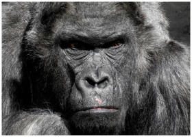 A striking close-up photograph of a gorilla displaying its expressive face and textured fur.