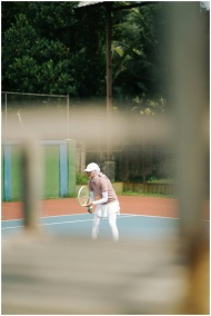 Female tennis player in action outdoors, captured