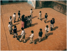 Group of school children engaged in outdoor educat