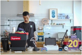 Young barista in Indonesia preparing coffee in a s