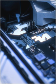 Detailed view of AMD CrossFireX technology on a motherboard, showcasing modern computing hardware.