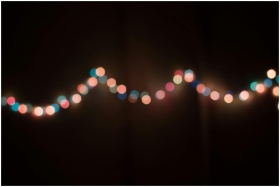 Defocused string lights creating a colorful bokeh