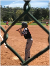 A young athlete ready to hit during a baseball game on a sunny day in Knoxville.
