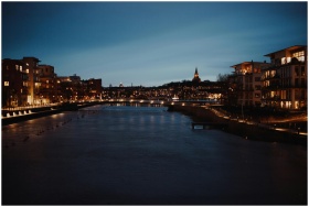 Evening view of Södermalm's illuminated waterfront