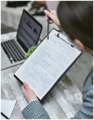 An adult reviews a home insurance policy document