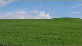 Lush green meadow under a blue sky with white clou