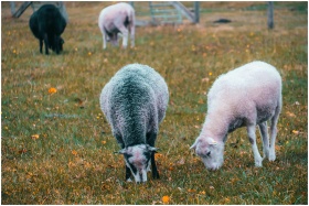A serene scene of sheep grazing in a lush pasture in Grinda, Sweden.