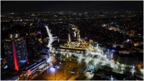 Aerial view of Taksim Square in Istanbul at night,