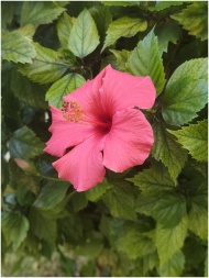 Close-up of a vibrant pink hibiscus flower in El P