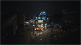 A narrow, atmospheric alley in Tokyo illuminated b