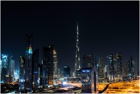 Stunning nighttime view of Dubai's skyline with th