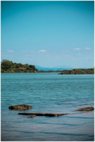 Peaceful lake scene with clear blue sky and distant hills in Friuli-Venezia Giulia.