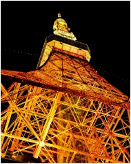 Dramatic view of Tokyo Tower illuminated at night,