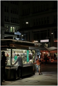 Lively street food scene in Wien, Austria at night, capturing urban nightlife and culture.