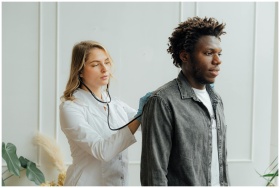Doctor conducting check-up on patient with stethos