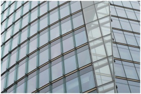 Close-up of a modern building facade with sleek gl