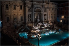 A stunning nighttime view of the illuminated Trevi