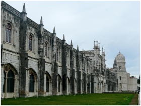 Elegant Gothic architecture of Jerónimos Monastery in Lisbon, Portugal captured under overcast sky.