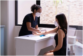 A healthcare professional wearing a face mask perf