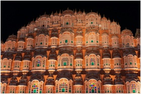 The iconic Hawa Mahal's illuminated facade in Jaip
