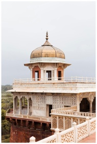Elegant architectural detail of the Musamman Burj tower at Agra Fort, India.