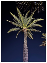 Green Palm Tree At Night Blue