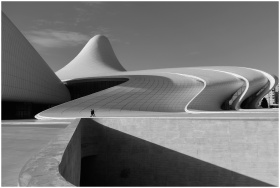 Dynamic view of the futuristic Heydar Aliyev Cente