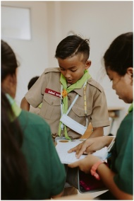 Thai students in scout uniforms studying together