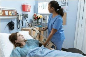 Nurse providing care to a patient in a hospital ro