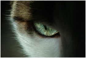 Intense close-up of a cat's eye showing detailed t