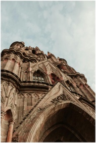Vertical shot of the stunning Gothic facade of a cathedral in San Miguel de Allende, Mexico.