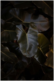 Captivating close-up of dark Philodendron leaves c
