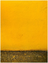 Vibrant yellow stucco wall with a rough texture an