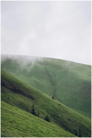 Scenic view of misty green hills in Ukraine, capturing the serene countryside atmosphere.