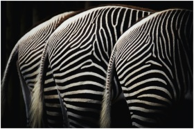 Artistic shot showcasing the black and white stripes of zebras in a wildlife setting.