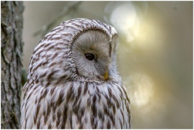 A detailed close-up photo of a Ural owl (Strix ura