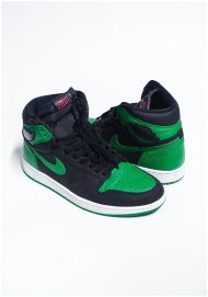 Stylish black and green sneakers with a sleek design against a plain white background.