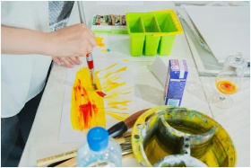 Explore creativity in a Tokyo art class, capturing vibrant brush strokes and colorful palettes.
