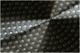 Close-up of a metallic surface with circular patterns creating an abstract texture.