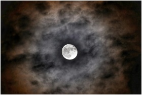 Captivating view of the full moon peeking through clouds in a serene night sky.