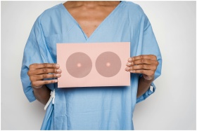 Healthcare professional holding a sign with breast