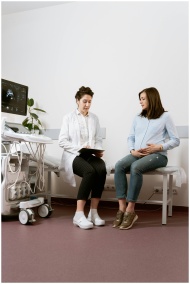 A pregnant woman consults with a doctor in a medic