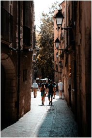 Stroll through a picturesque cobblestone alley in an old town, capturing urban charm.