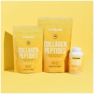 Showcase of Correxiko collagen peptides with vibrant yellow packaging.