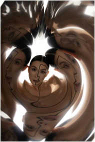 Creative portrait with surreal reflections, featur