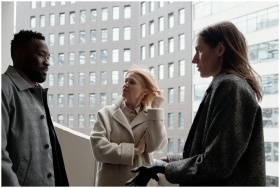 Two business professionals engage in a serious con