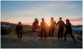 A group of friends having fun and enjoying a sunse