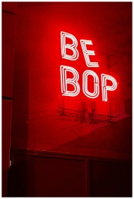 Bright red neon 'Be Bop' sign in Buenos Aires bar,