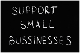 Inspirational chalkboard text 'Support Small Businesses' on black background.